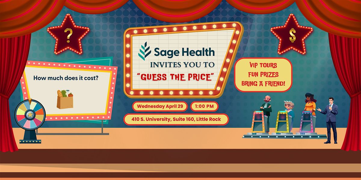 Join us at Sage Health North Little Rock, for a fun and casual Guess The Price. It’s happening on April 29, 2026 at 1:00 PM (Central Time). Come test your skills, enjoy some laughs, and connect with others in the community. Don’t miss out on this cool in-person event where health meets fun! VIP Tours are available as an add-on to your RSVP. This event is for adults 50+.
