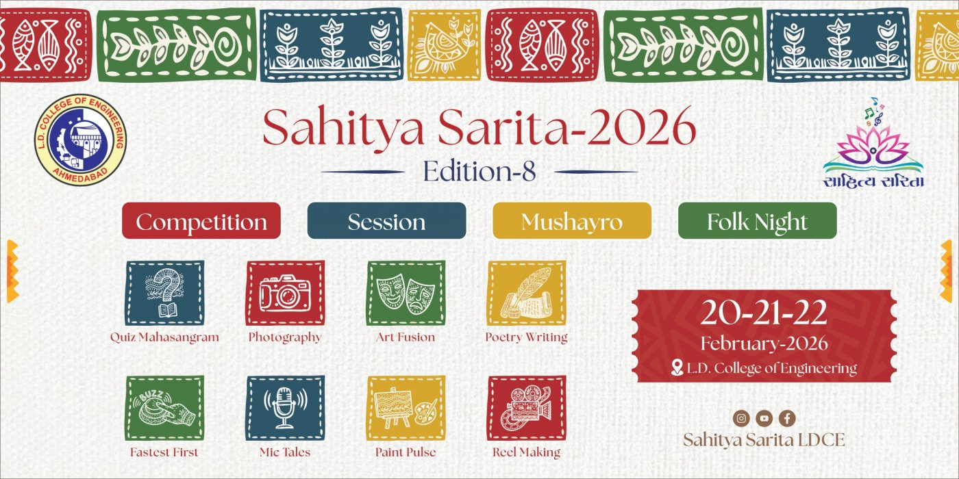 Introducing Sahitya Sarita 2026: a vibrant celebration of literature and cultural richness. Immerse yourself in live sessions featuring renowned speakers as we invite you to strengthen your knowledge and deepen your appreciation for literature. This year Sahitya Sarita aims to create unforgettable memories adding a new dimension to your literary experiences. Get ready for engaging sessions exciting competitions and a celebration of the colorful tapestry of literature. Join us for making Sahitya Sarita 2026 a highlight in your list of favorite moments.
