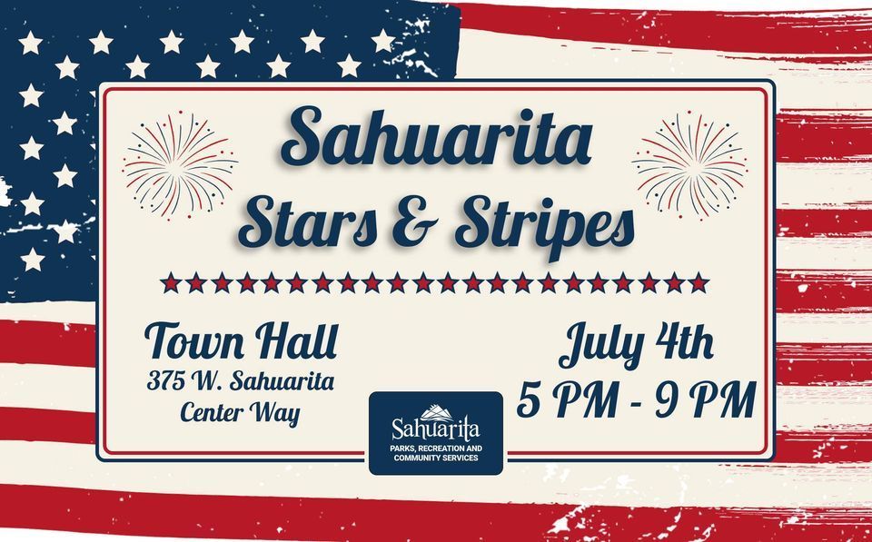 Join us for Sahuarita Stars & Stripes on July 4th to celebrate our nation's birthday in the desert! The event will be from 5 PM - 9 PM at Sahuarita Town Hall. There will be live music, a car show, Rolling Thunder parade, beer & wine, food trucks, and vendors. We will finish off the night with a laser show and fireworks! Be sure to bring your picnic chairs and blankets to enjoy the show. Parade: 4:30 PM