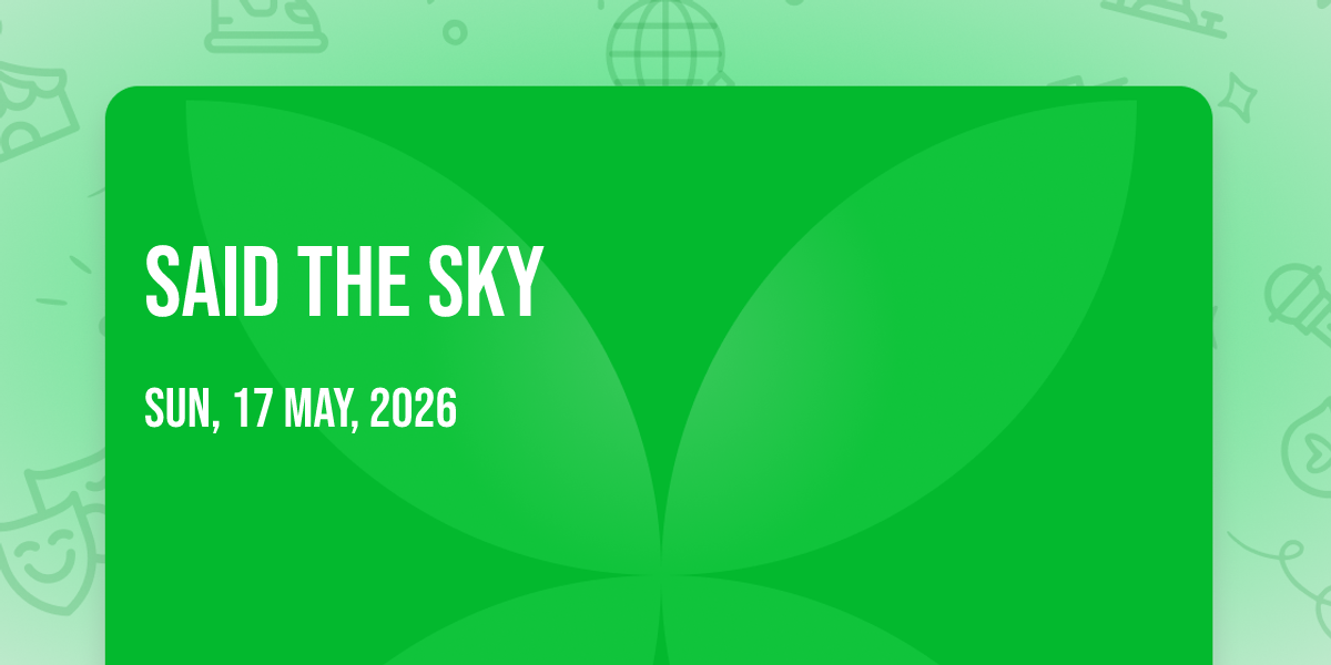 📍 Location: 43.6668, -79.3135🌟 Step into a world of wonder at Said The Sky, where extraordinary moments await! 🏛️ Located at History in dynamic Toronto, ON, this event will become the talk of the town. 📅 Join us on May 17th, 2026 at 12:00 AM for a celebration that defies the ordinary. ✨ This curated experience brings together the best of entertainment, culture, and community spirit. Every detail has been thoughtfully planned to ensure an unforgettable experience for all our guests. 🎯 Take advantage of this opportunity to be part of something special. 🎊 Early registration is recommended as space is limited!