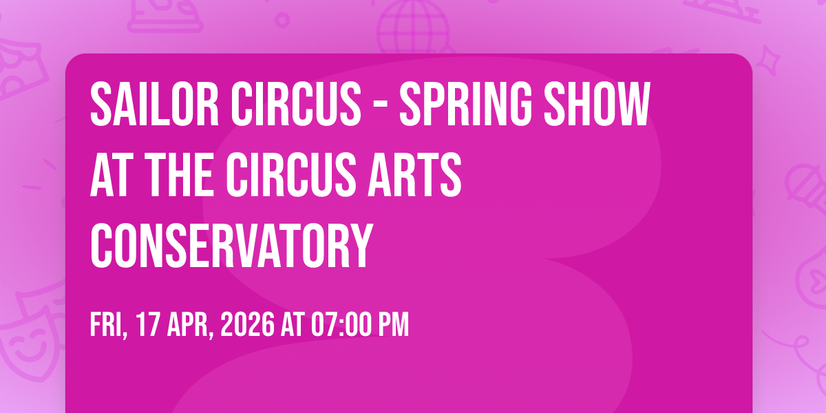 π Be part of history at Sailor Circus - Spring Show at The Circus Arts Conservatory, an extraordinary gathering that will captivate your imagination! ποΈ The prestigious The Circus Arts Conservatory in Sarasota, FL sets the stage for an unforgettable experience on April 17th, 2026 at 07:00 PM. β¨ They are bringing together the finest elements of entertainment and innovation to create moments that will take your breath away. From the moment you arrive, you'll be immersed in an atmosphere of wonder and excitement. π― This carefully planned event ensures every guest experiences something truly special. π Early booking is recommended for this must-attend event of the season!