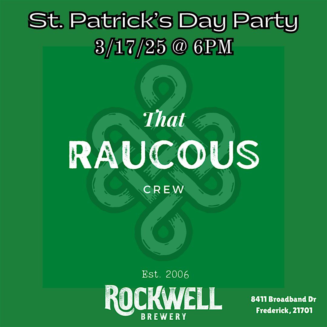 Celebrate a traditional Saint Patrick's Day Party @ Rockwell Brewery with music by That Raucous Crew Irish Band on 3/17/25 @ 6PMAbout this Event