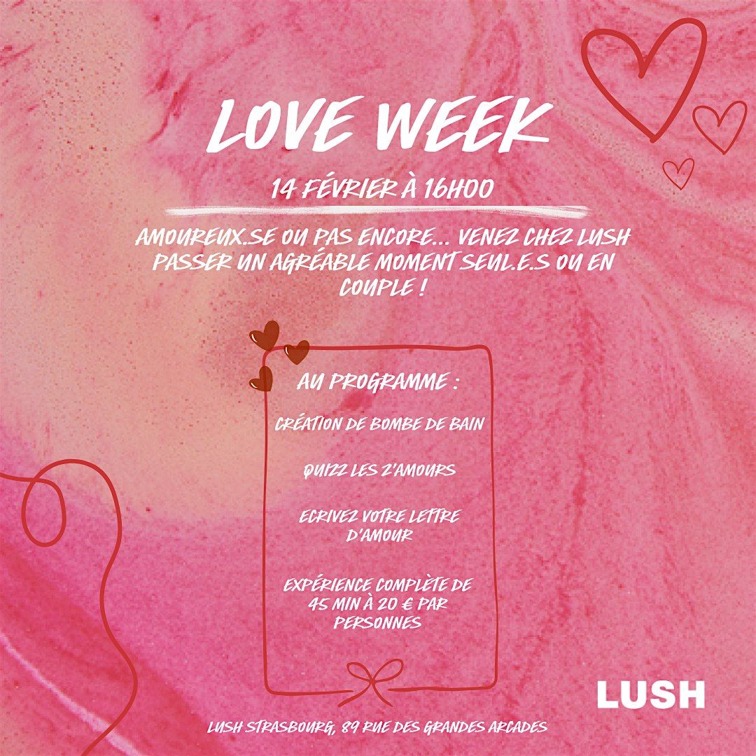 Pour une durée de 45 minutes, à 20 € par personne, retrouvez nous en boutique LUSH à Strasbourg à 16h00 afin de célébrer l'amour et de partager l'amour à travers LUSH !