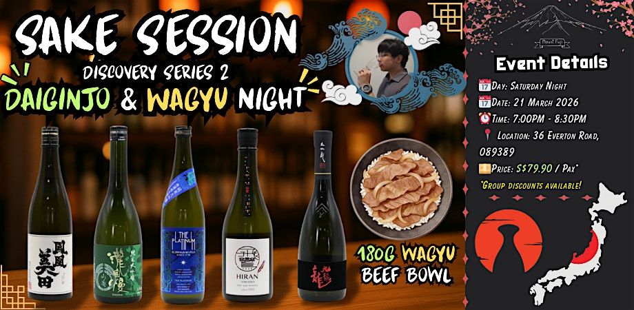 Come and discover 5 Daiginjo Style Sakes specially selected for this session β including a 180g Wagyu Beef Bowl to pair along as we taste! Each sake has been handpicked to offer a unique tasting experience, and youβll be guided through its story, character, and how it pairs with the Wagyu!