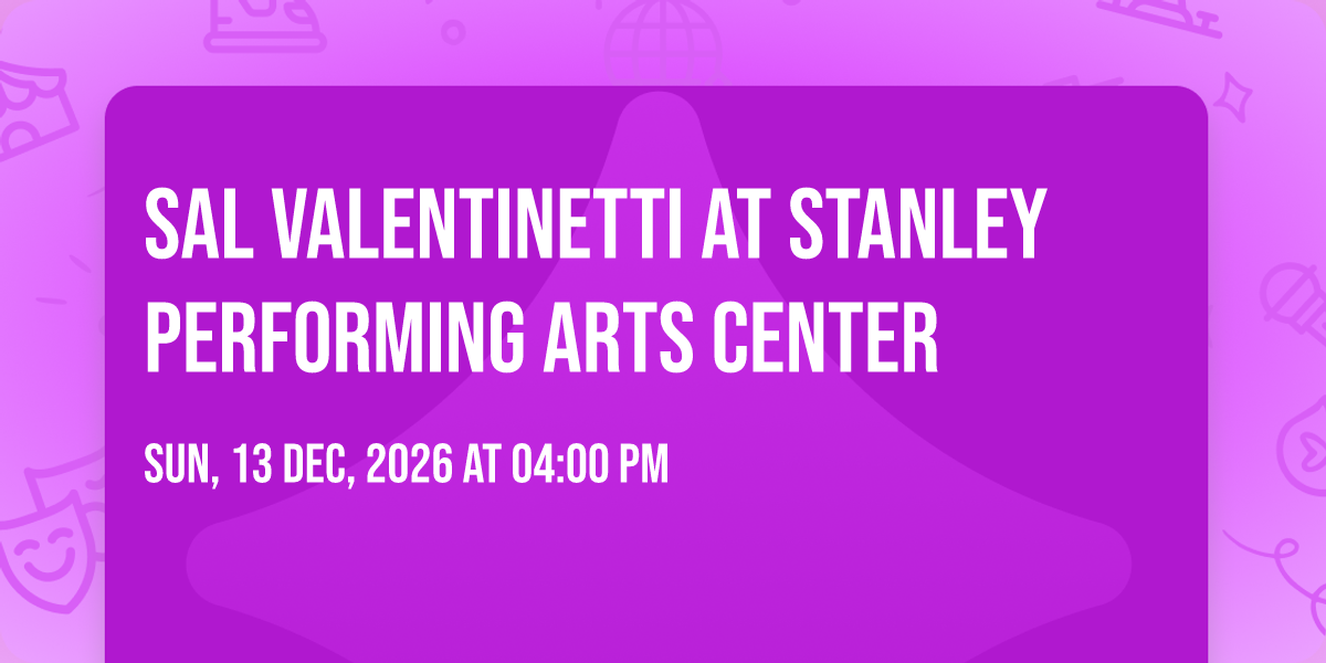 β¨ Experience the magic of Sal Valentinetti at Stanley Performing Arts Center, where moments become memories that last a lifetime! ποΈ The iconic Stanley Performing Arts Center in Utica, NY sets the perfect stage for an unforgettable celebration on December 13th, 2026 at 04:00 PM. π It's been a curated experience that brings together the best of entertainment and innovation, creating an atmosphere of wonder and excitement. From the moment you arrive, you'll be immersed in a world where the ordinary transforms into the extraordinary. π Book early to secure your place in what promises to be an event that will be talked about for years to come!