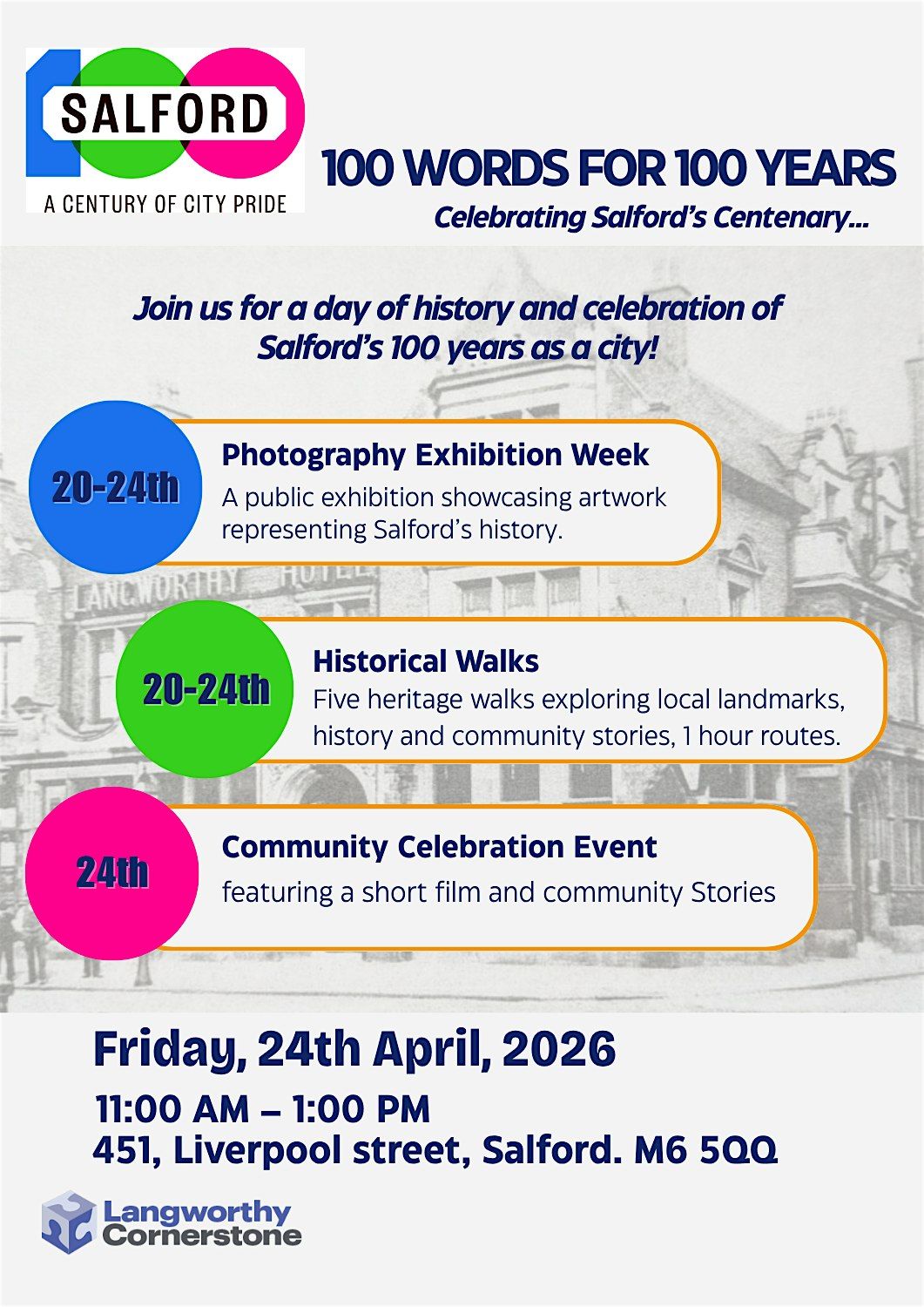 1) 📸 Salford 100 Stories Photography Exhibition (20TH -24TH APRIL)