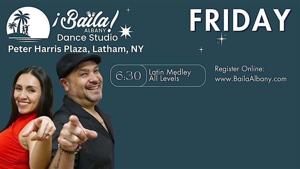 #FridayNightDance #LatinMedley #SalsaShines #BailaAlbany #LathamNY #SalsaOn2 #CapitalRegionLatin #PeterHarrisPlaza #DancePartyStartsHere See less