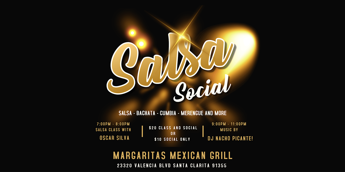 Salsa on ONE presents Salsa Social at Margaritas Mexican Bar and Grill in Santa Clarita.Start out the evening with a one hour Salsa or Bac