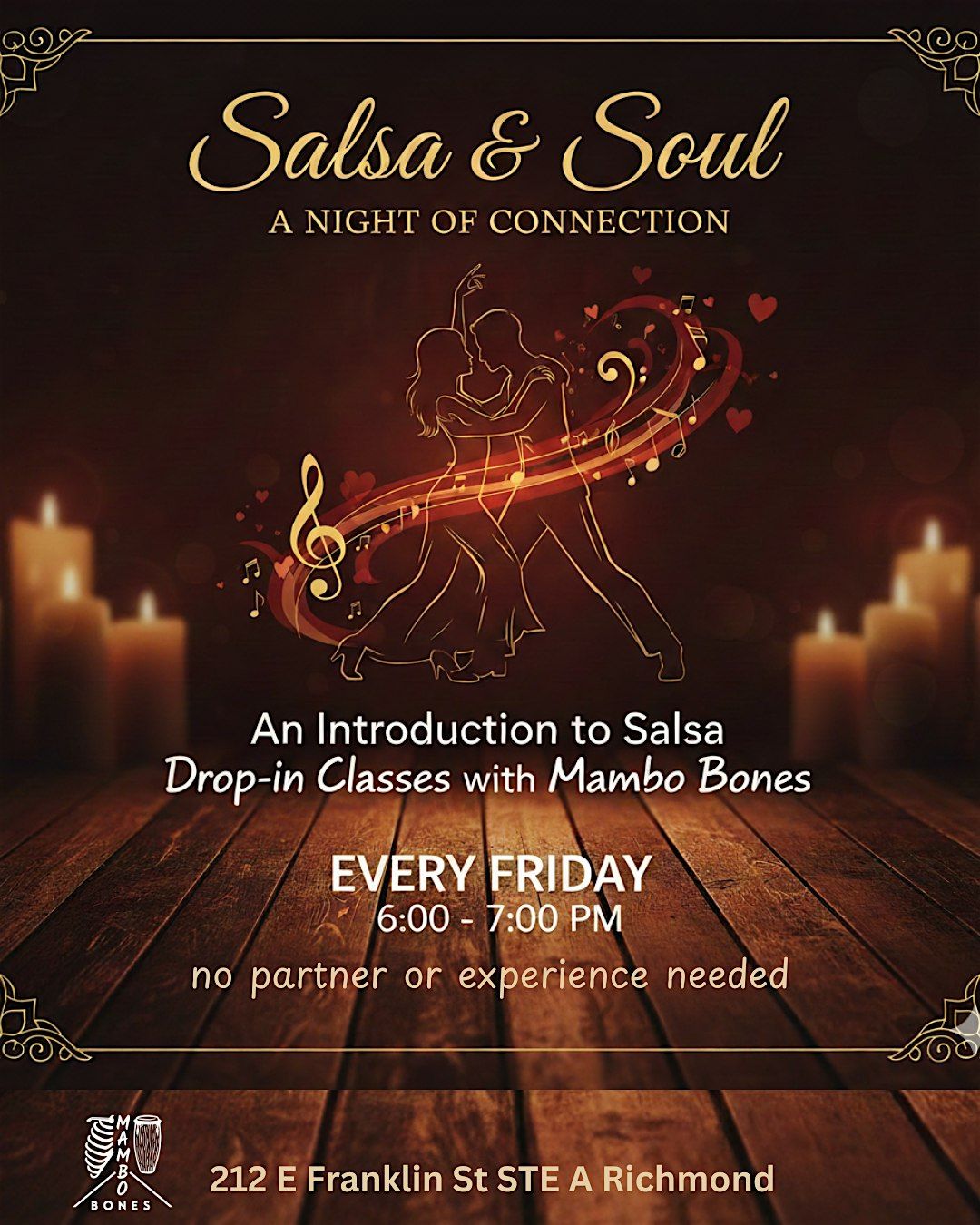 Salsa & Soul: A Night of Connection. Try out salsa at our beginner-friendly hour-long salsa class every Friday. Come solo or with a partner!