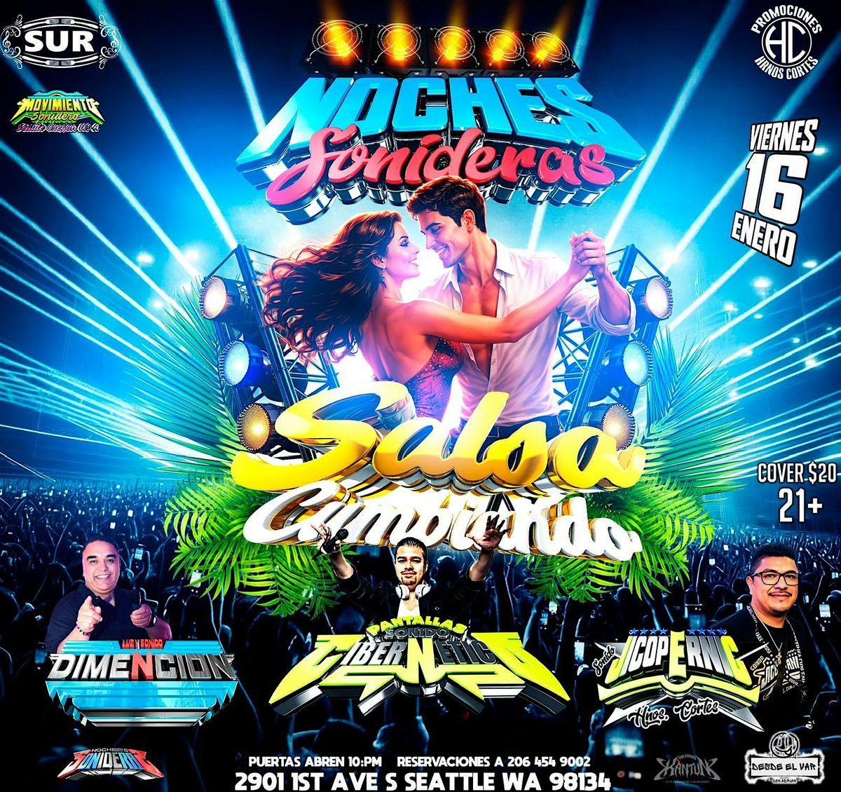 ¡Viernes 16 de Enero 10PM en Club Sur Seattle! 💃🕺Ven a bailar y disfrutar a las Noches Sonideras. Lo mejor de la musica con los mejores exponentes.