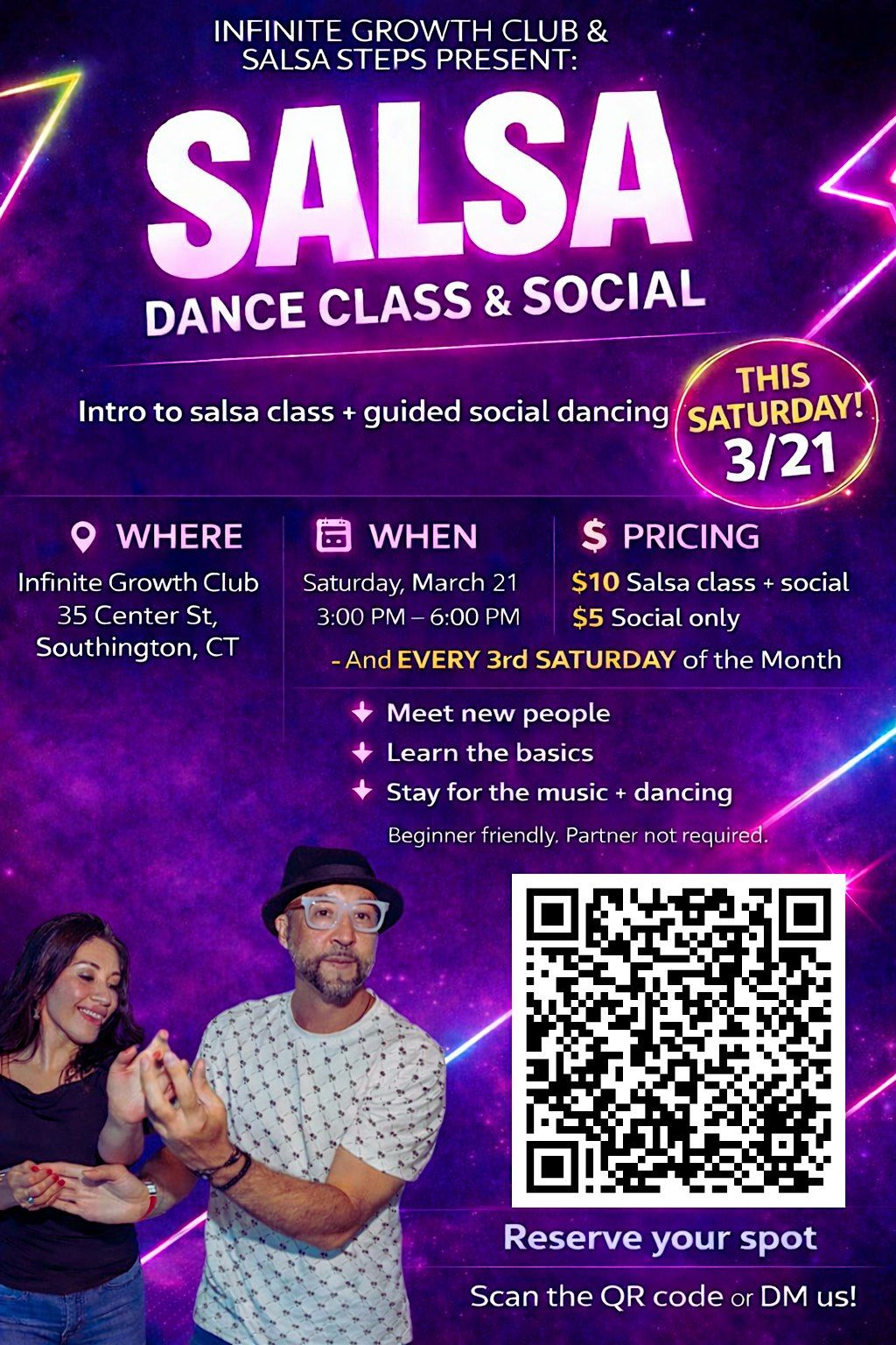 Enjoy an afternoon of salsa dance lessons, beginner friendly, no partner neededAbout this Event