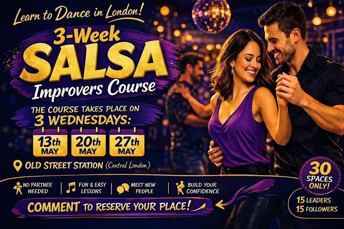 Join us for a fun and welcoming 3-week Salsa Improvers Course, designed for dancers who already know the basics and are ready to take their dancing to the next level.