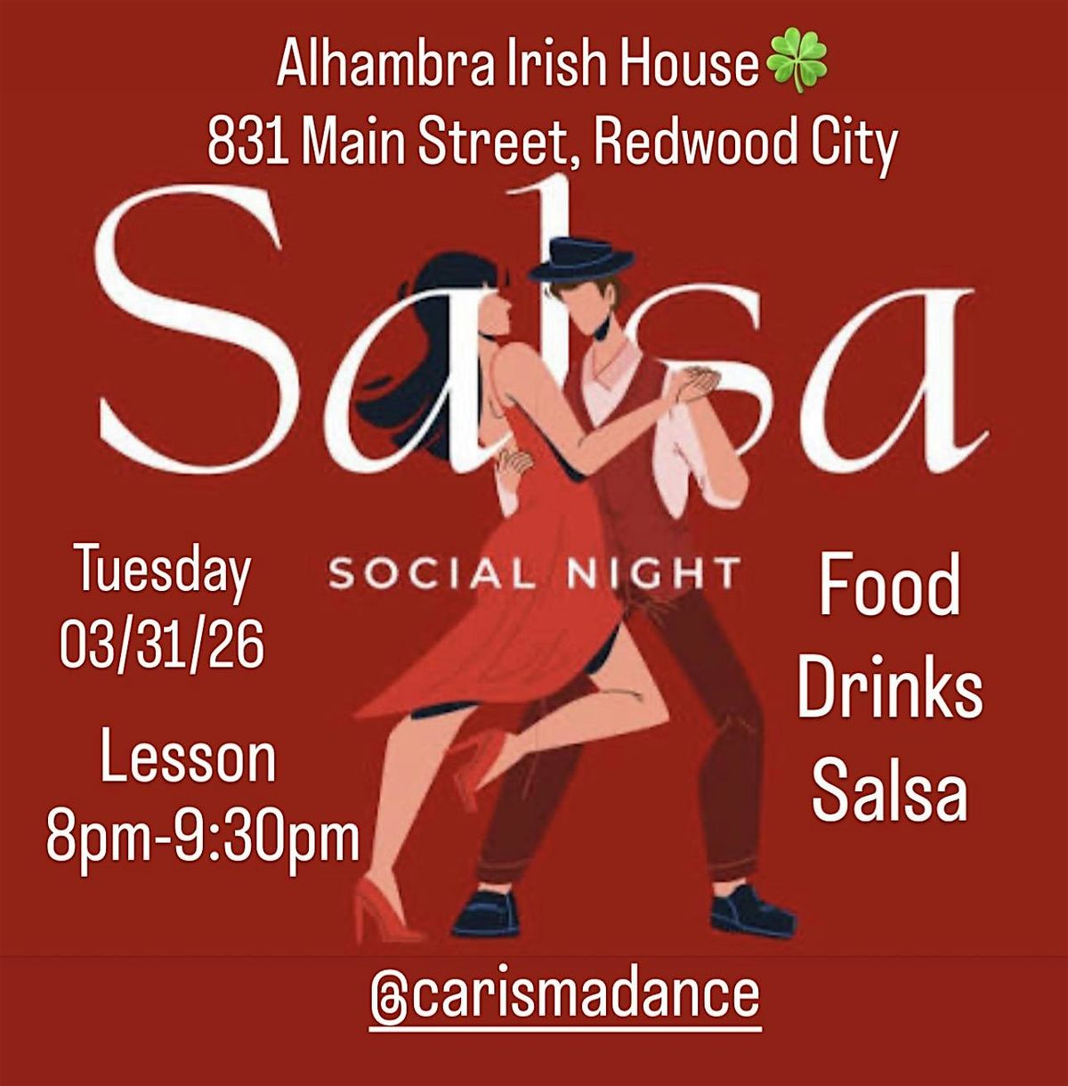 Join us for a fun night at Alhambra Irish House on March 31, 2026 at 8:00 PM (PDT)! Join us for drinks & dinner and stay for Salsa dancing! Kitchen open 4-9pm & Bar 3-11pm! Happy hours 4-6pm!
