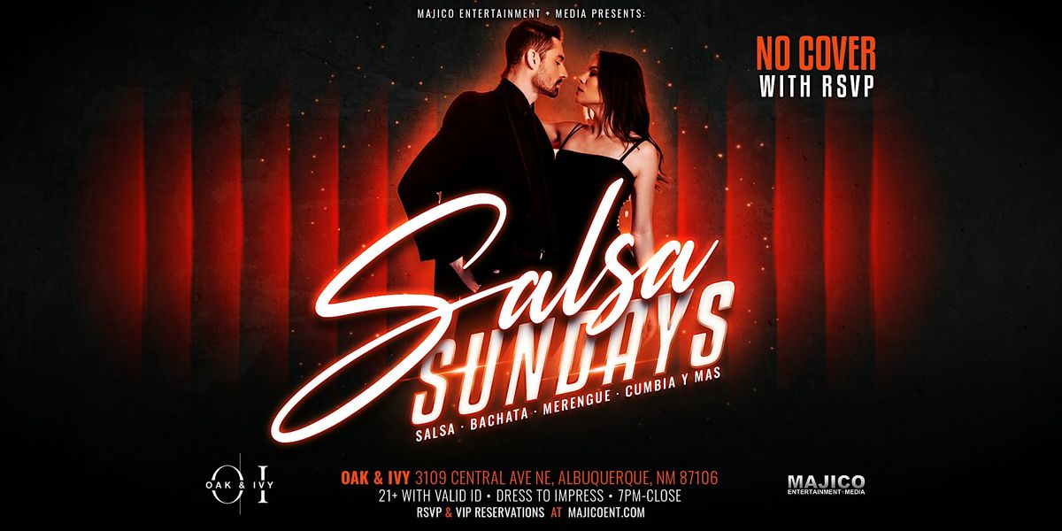 ? Dive into the rhythm at Oak & Ivy's Salsa Sundays! ?? Join us every Sunday from 7 pm for electrifying beats and vibrant dance. No cover with RSVP at majicoent.com or check-in on social media at Oak & Ivy. Immerse yourself in the lively blend of salsa, bachata, merengue, and cumbia.