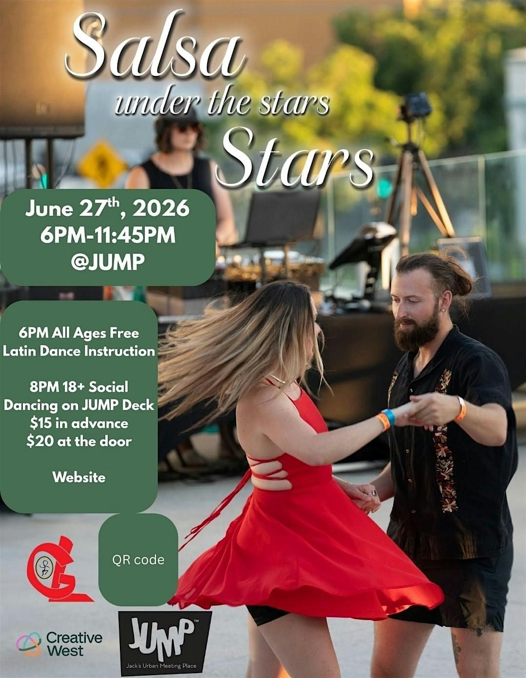Get ready to move your feet at Salsa Under the Stars! Join us for an in-person night filled with sizzling Salsa beat, Bachata, Zouk, Reggaeton and other Latin dance tunes, great vibes, and lots of dancing under the open sky. All levels welcome. Come learn, enjoy the rhythm, make new friends, and make unforgettable memories. Don’t miss this chance to dance the night away where music and stars meet!
