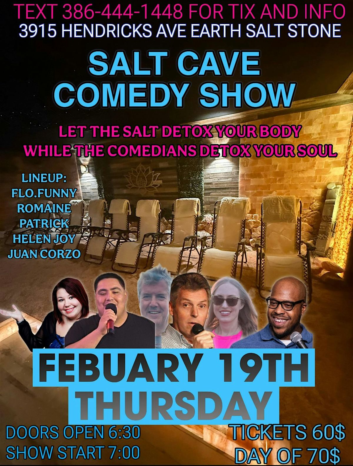 You’ll be inside a Himalayan salt cave, breathing healing salt air, surrounded by the warm salt glow, and enjoying a full lineup of comedians with different styles.