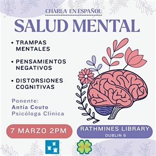 Con motivo del Día Internacional de la Mujer, Association of Spanish speakers in Ireland (ASPI) te invita a una charla en español sobre Salud Mental, un espacio de reflexión y aprendizaje para comprender mejor cómo funciona nuestra mente y cómo influyen los pensamientos en nuestro bienestar emocional.