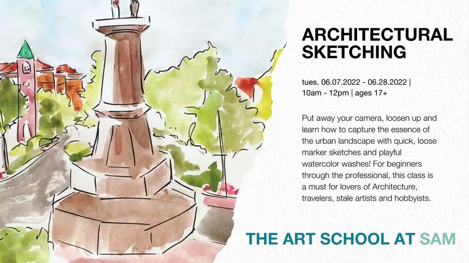 Put away your camera, loosen up and learn how to capture the essence of the urban landscape with quick, loose marker sketches and playful watercolor washes. For beginners through the professional, this class is a must for lovers of Architecture, travelers, stale artists and hobbyists. Perspective basics, composition; choosing a view point; how to simplify and fake details, building materials, foliage and landscaping; capturing the gestures of individuals and crowds.