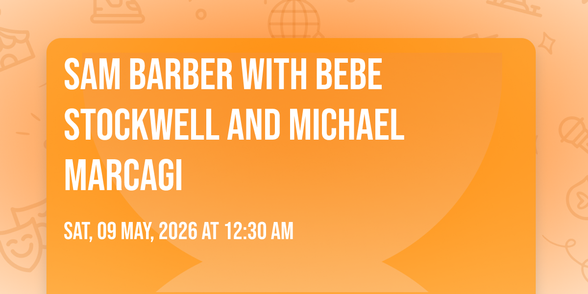 π Location: 37.6898, -97.3314π Step into a world of wonder at Sam Barber with Bebe Stockwell and Michael Marcagi, where extraordinary moments await! ποΈ Located at WAVE - Outdoor in dynamic Wichita, KS, this event will become the talk of the town. π Join us on May 9th, 2026 at 12:30 AM for a celebration that defies the ordinary. β¨ This curated experience brings together the best of entertainment, culture, and community spirit. Every detail has been thoughtfully planned to ensure an unforgettable experience for all our guests. π― Take advantage of this opportunity to be part of something special. π Early registration is recommended as space is limited!