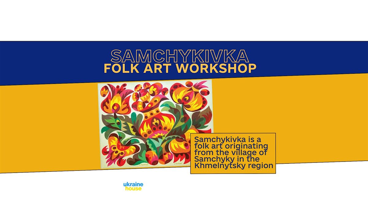 Join us at Ukraine House for a creative and educational journey into the world of Samchykivka, a folk art that has its roots in a village named Samchyky in the Khmelnytsky region of Ukraine.