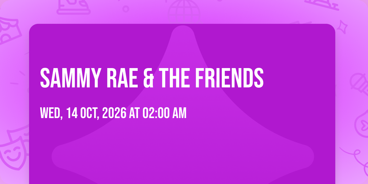 π Location: 49.2806, -123.121β¨ Experience the magic of Sammy Rae & The Friends, where moments become memories that last a lifetime! ποΈ The iconic Commodore Ballroom in Vancouver, BC sets the perfect stage for an unforgettable celebration on October 14th, 2026 at 02:00 AM. π It's been a curated experience that brings together the best of entertainment and innovation, creating an atmosphere of wonder and excitement. From the moment you arrive, you'll be immersed in a world where the ordinary transforms into the extraordinary. π Book early to secure your place in what promises to be an event that will be talked about for years to come!