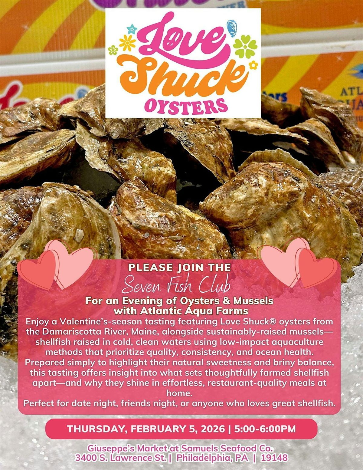 Join Samuels Seafood Co. and Atlantic Aqua Farms for a tasting of Love Shuck OystersAbout this Event