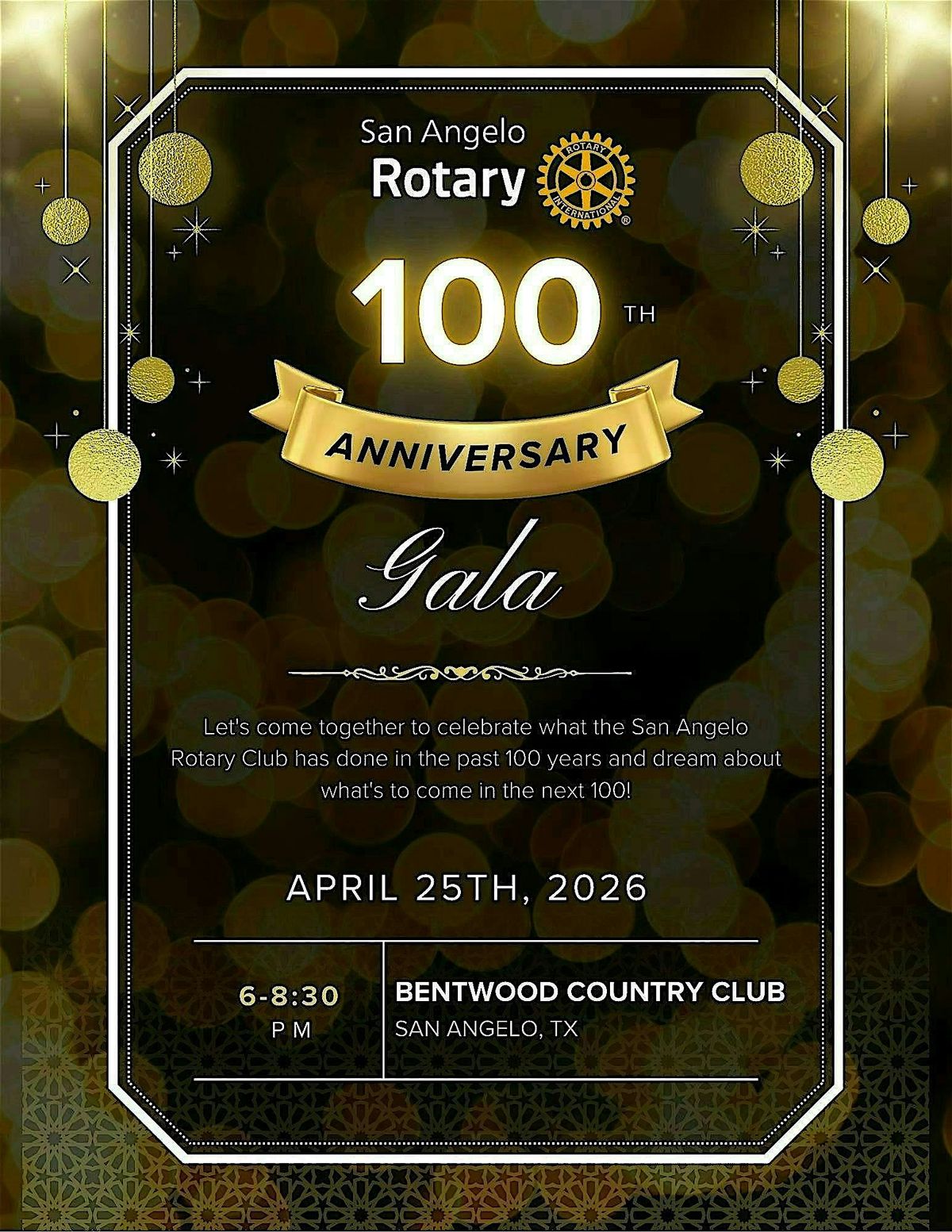 Join Us for the San Angelo Rotary Club 100 Year Gala!