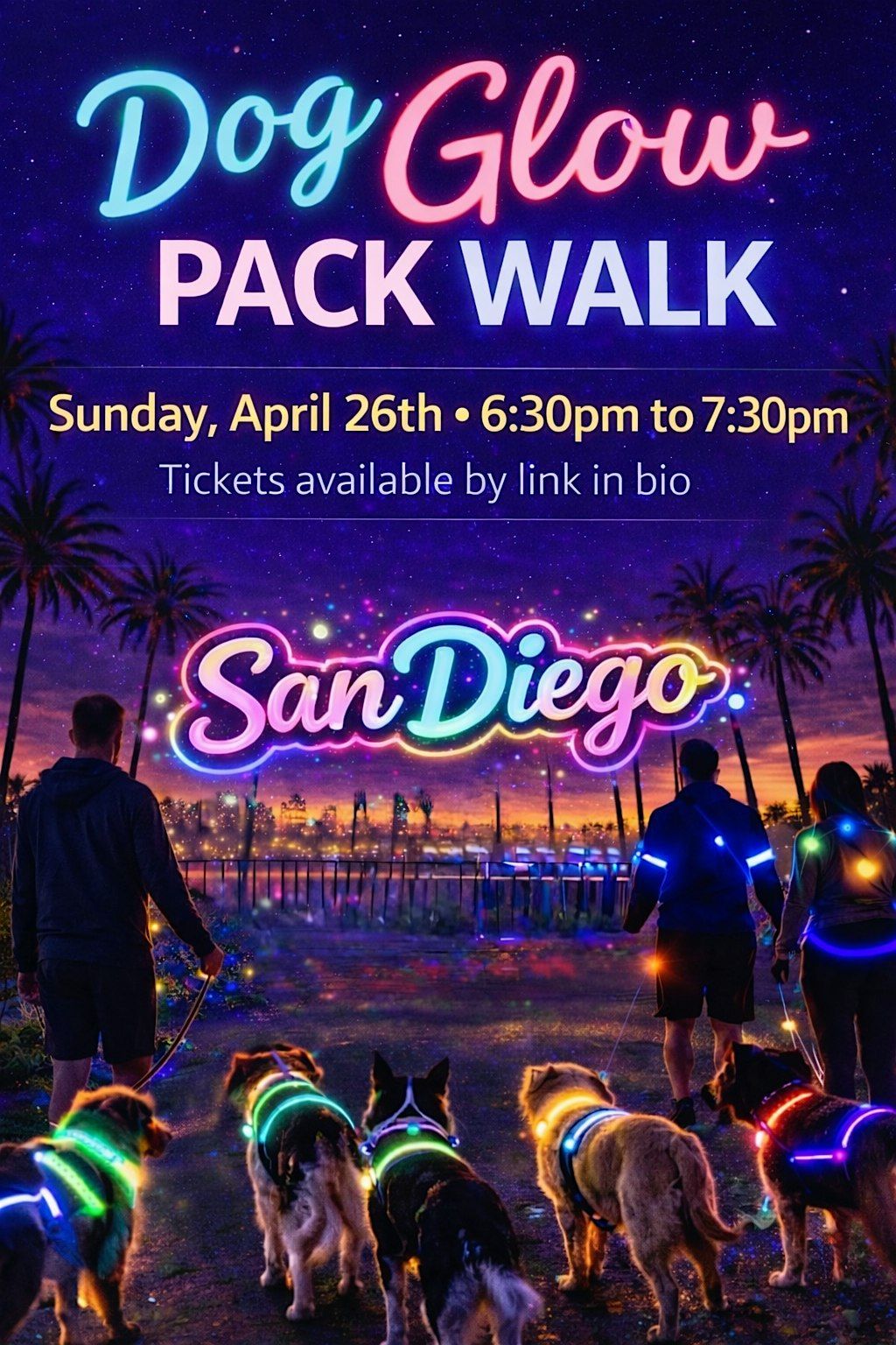 Get ready for a glowing night out with your pup at the San Diego Dog Glow Pack Walk!