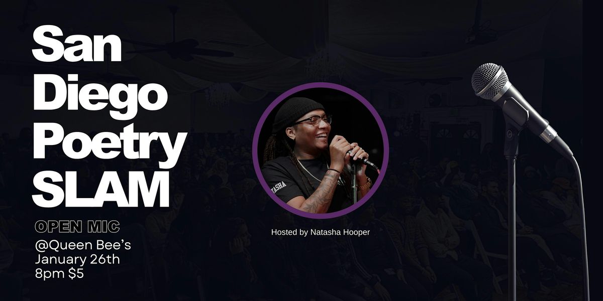 Welcome to the San Diego PoetrySLAM Open Mic at Queen Bee's Art and Cultural Center! Join us on January 26, 2025 at 8:00 PM (Pacific Time) for a night filled with creativity and expression. Bring your poems or just come to listen and enjoy the vibes. Let's celebrate the power of words together in the heart of San Diego. Don't miss out!
