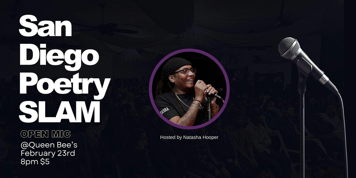 Welcome to the San Diego PoetrySLAM Open Mic at Queen Bee's Art and Cultural Center! Join us on February 23rd, 2025 at 8:00 PM (Pacific Time) for a night filled with creativity and expression. Bring your poems or just come to listen and enjoy the vibes. Let's celebrate the power of words together in the heart of San Diego. Don't miss out!