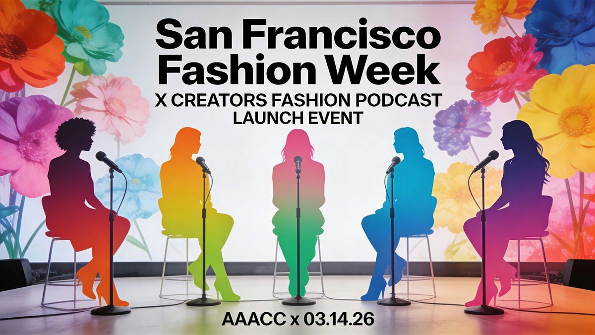 San Francisco Fashion Week proudly presents the official launch event of the CREATORS Fashion Podcast, a new multimedia platform amplifying the voices shaping fashion, culture, and creativity—produced by Fashion For The People. Hosted at the AAACC, this intimate cultural gathering brings together designers, creatives, innovators, and community leaders for an evening of conversation, storytelling, and creative exchange at the intersection of fashion, art, music, and identity.