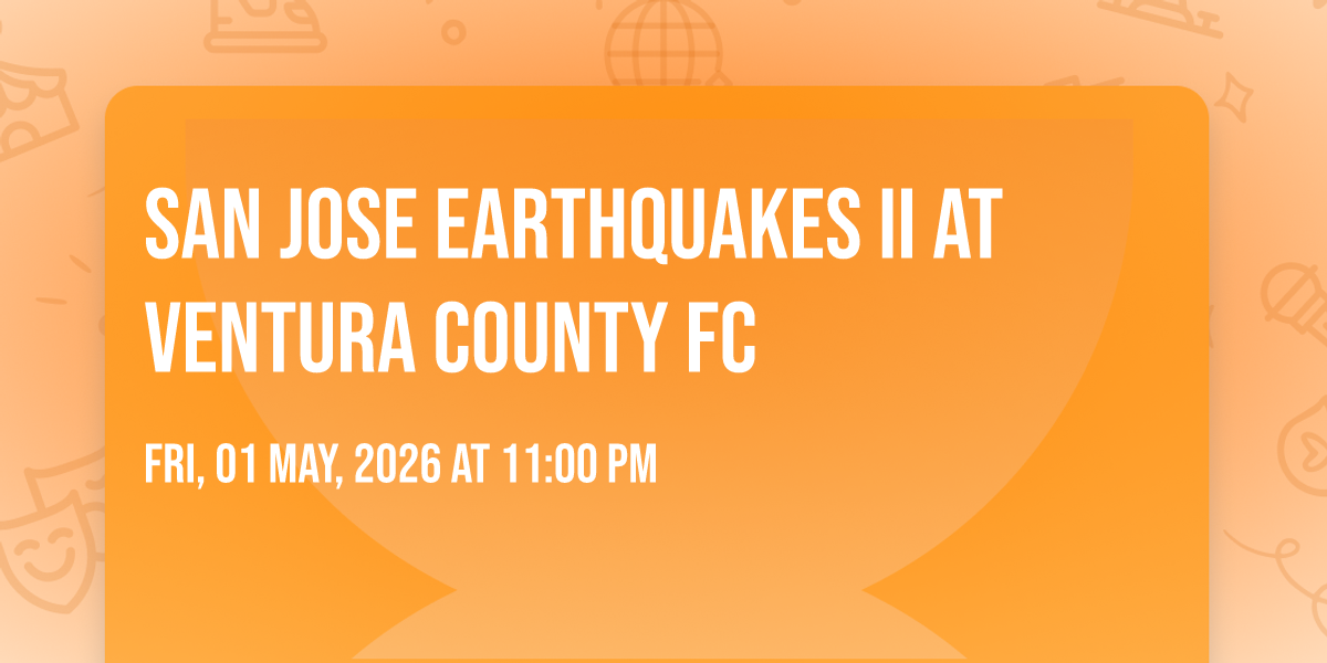 π Location: 34.2245, -118.877π Prepare to be amazed at San Jose Earthquakes II at Ventura County FC, the most anticipated gathering of the season! π Set against the stunning backdrop of William Rolland Stadium in vibrant Thousand Oaks, CA, this event promises to redefine your expectations. π Mark your calendars for July 25th, 2026 at 11:00 PM and get ready to immerse yourself in an atmosphere of wonder and excitement. β¨ From the moment you arrive, you'll be transported into a world where memories are made and stories come alive. They have crafted an experience that perfectly harmonizes entertainment, innovation, and community spirit. π Join us as we create moments that will be discussed for years!