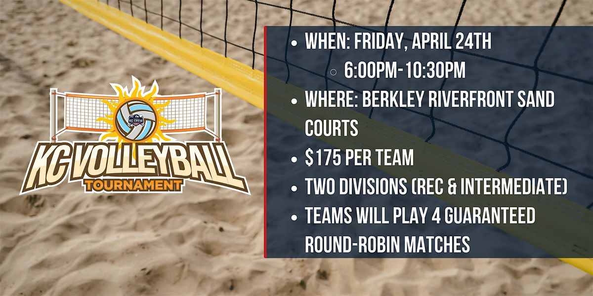Grab your crew, bring the energy, and hit the sand—it’s time for KC Crew’s Friday Night Sand Volleyball Tournament! Whether you're playing for fun or ready to compete, we’ve got a spot for you.