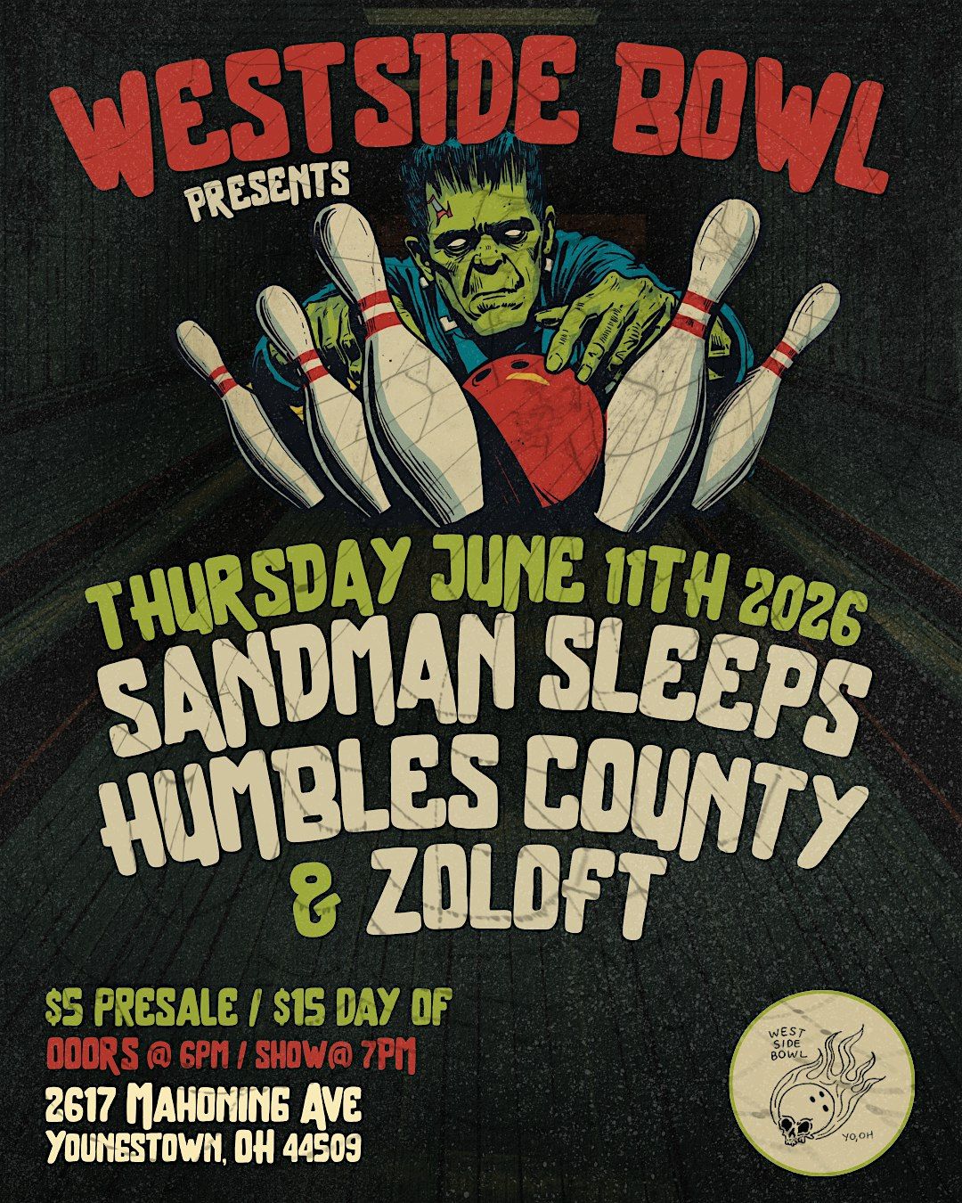 Join us at the Westside Bowl for Sandman Sleeps, Humbles County, and Zoloft!