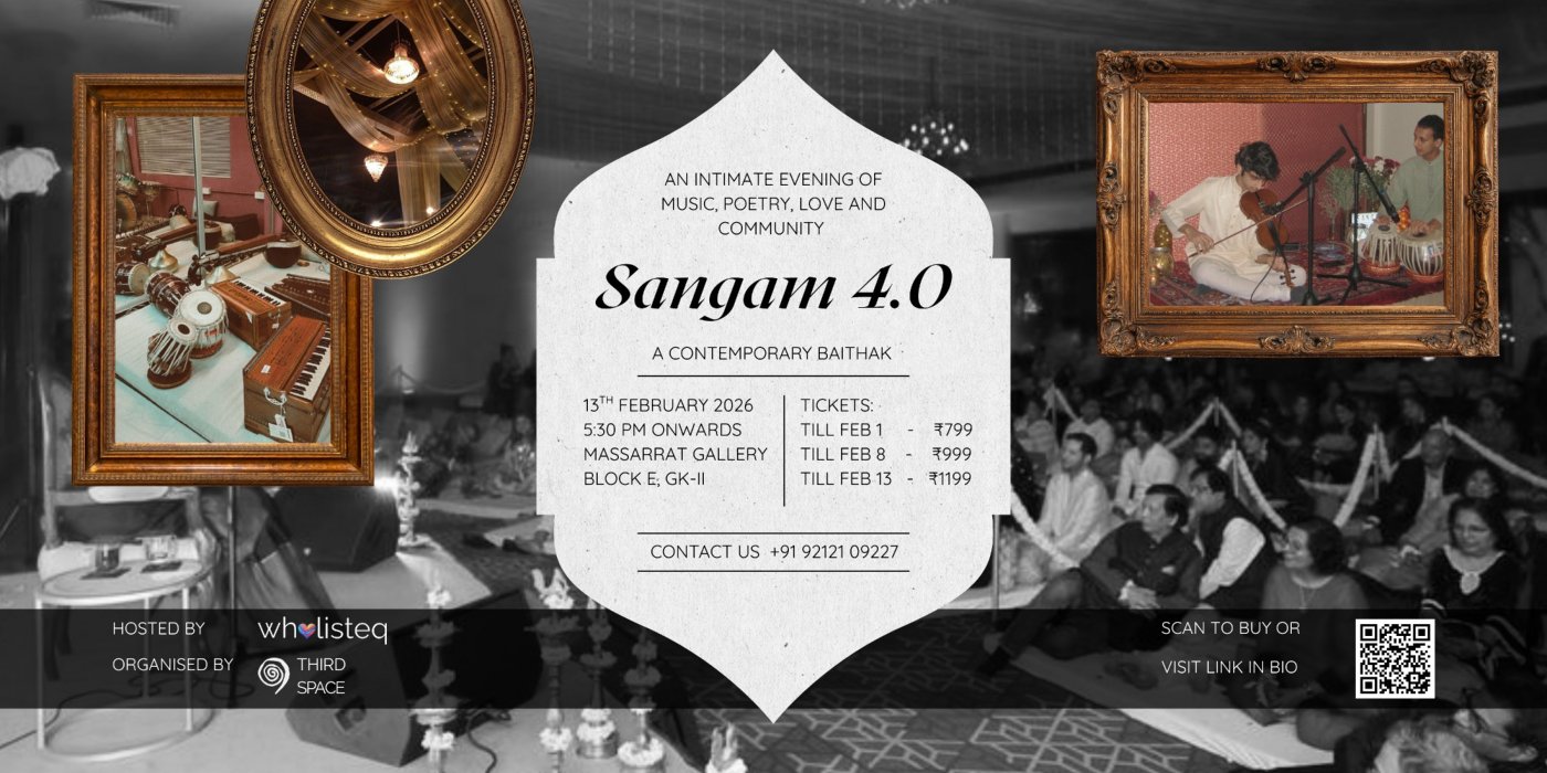 SANGAM 4.0 is a small evening with music🎼 and poetry, where people sit together🫂, listen, hum along if they feel like it, and don’t rush through the moment. It’s a space to slow down, breathe a little deeper😌, and reconnect with yourself through sound, words, and shared presence.😇