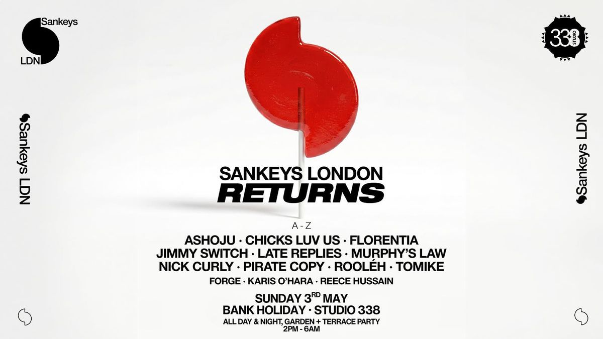 Sankeys LDN Returns - All Day, All Night, Garden & Terrace Party!SANKEYS RETURNS TO ITS LONDON HOME!Sunday 3rd May - Bank Holiday Weekend, for an all-day and night Garden & Terrace party!