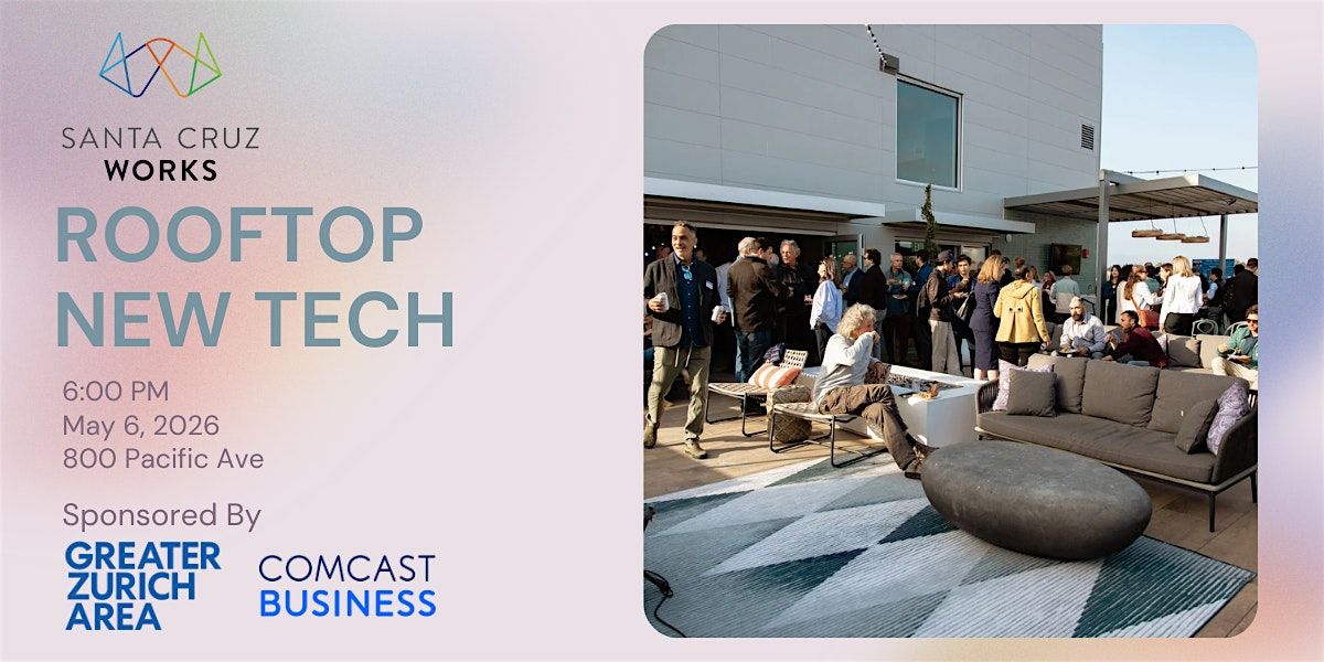 Join us on May 6 on the rooftop at Anton Pacific, one of our all-time favorite venues, where sweeping views of the San Lorenzo River, the Boardwalk, and Monterey Bay set the stage for a night of big ideas and even bigger connections.