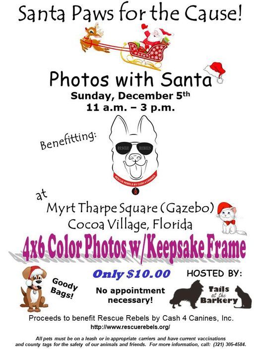 Bring your pet and children, too, and join Rescue Rebels by Cash 4 Canines, Inc., an all-volunteer, nonprofit organization, for Photos with Santa!Sunday, December 5, 2021