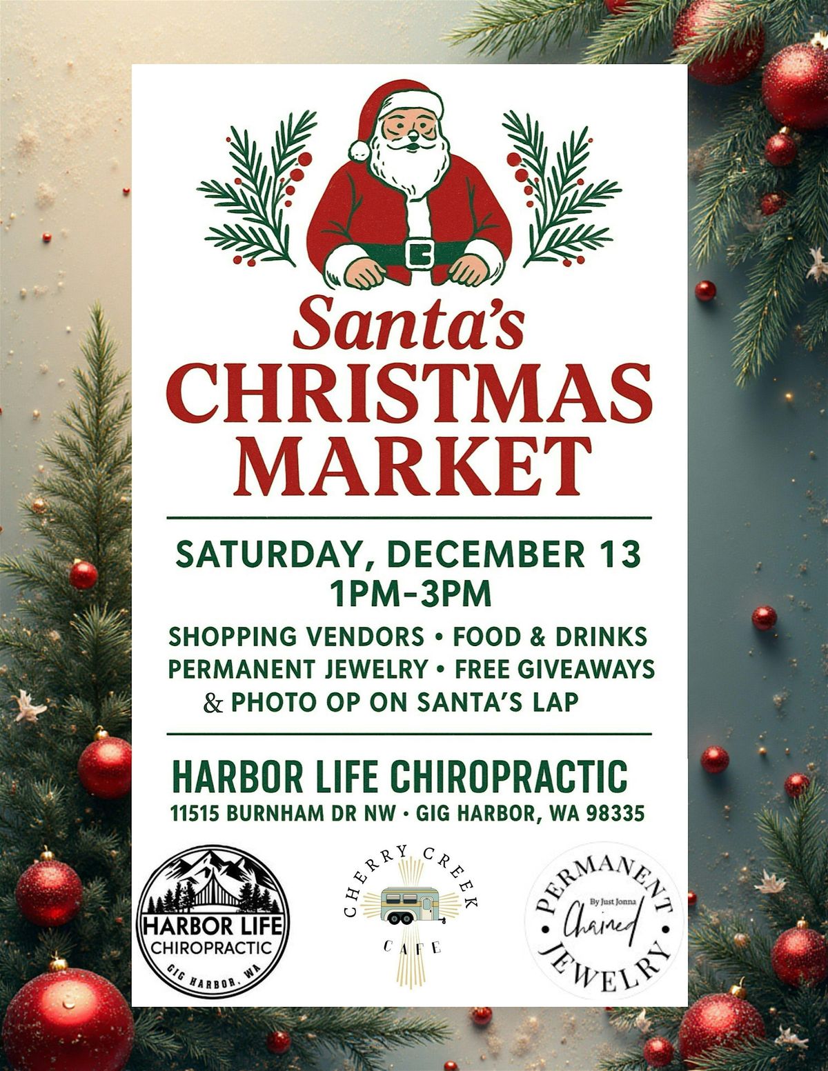🎅✨ Santa’s coming to Gig Harbor! Join us for Santa’s Christmas Market at Harbor Life Chiropractic 🎄
