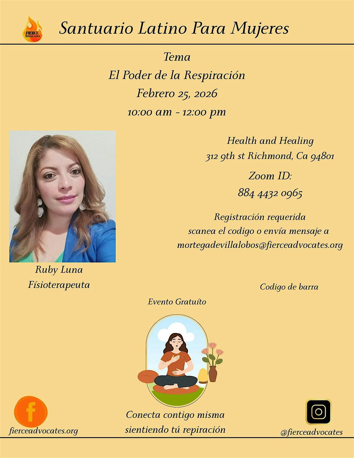 - Lugar: 312 9th St, Richmond, CA 94801/ZOOM ID: 871 5334 0831