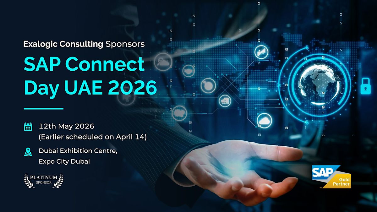 SAP Connect Day UAE 2026 is a full-day enterprise summit at the iconic Dubai Exhibition Centre, Expo City Dubai. Exalogic Consulting β UAE's leading SAP Gold Partner and Platinum Sponsor β this is the event where the UAE's most influential business and technology leaders come together to shape the future of enterprise AI and Cloud ERP.