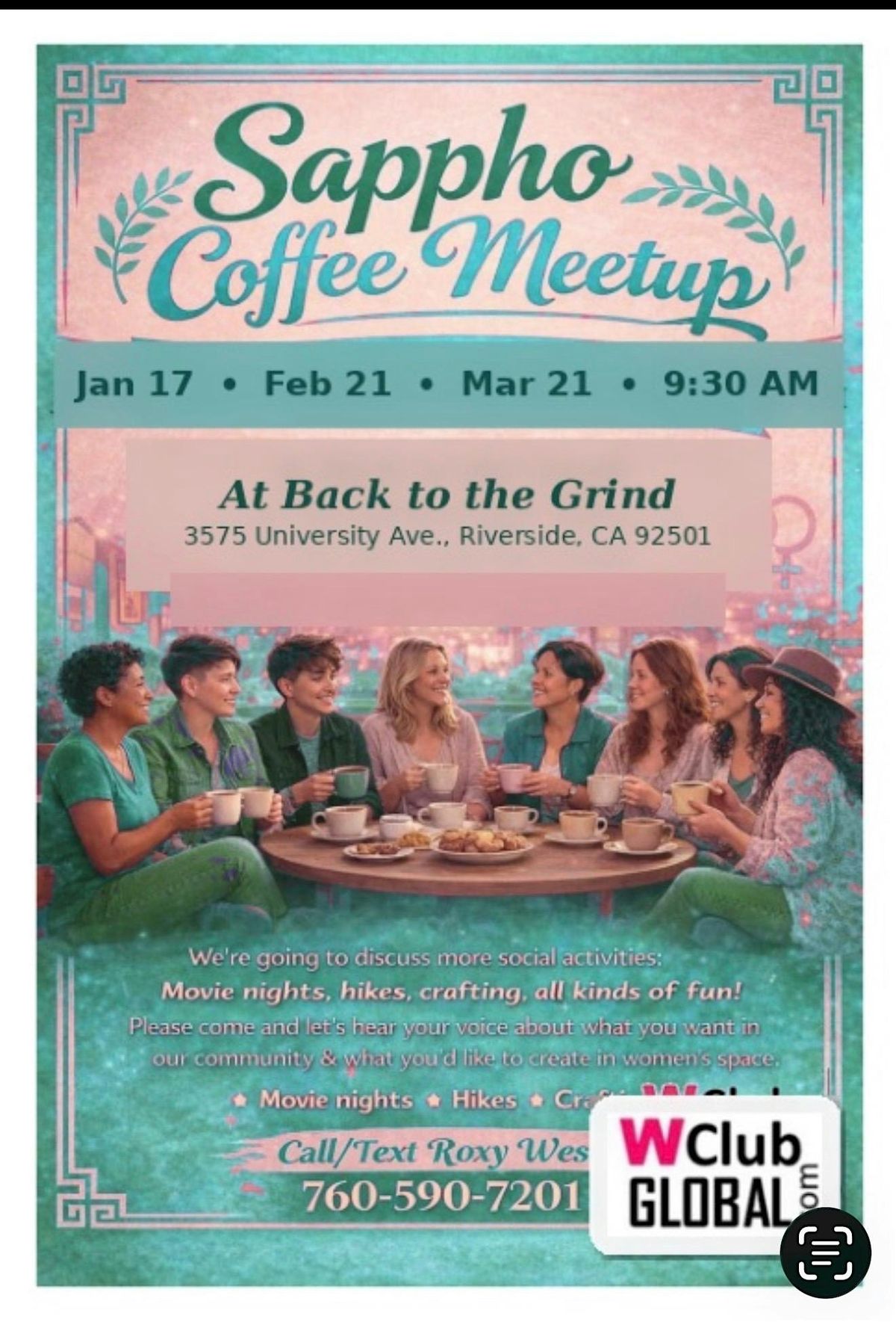 Hey Sapphos, Queer Women, Lesbians! Swing by our in-person pop-up to mingle, Sappho Coffee Meet & Greets are cozy, free, low-key hangouts for queer lesbians and WLW who want real community, easy laughter, and new friendships, without the pressure of a “scene.” This is a monthly meet-up where you can show up as you are: relaxed, curious, and open to connection. Chat, sip, giggle, share stories, and get to know other Sappho babes in a warm, welcoming space. No awkward expectations, no stress, no forced icebreakers, just a friendly vibe and good conversation. Whether you’re new in town, wanting more queer community, or simply craving a sweet little moment… you belong here. And hey, you might even meet the woman of your dreams. 😉✨