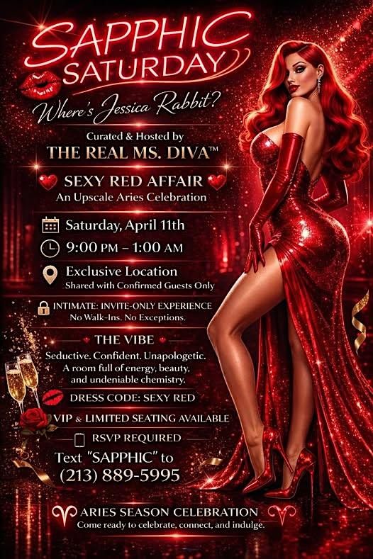 Get ready for a night of pure elegance and sensuality at Sapphic Saturday: Sexy Red Affair! Join us on April 11, 2026, at 9:00 PM at Sapphic Saturday.