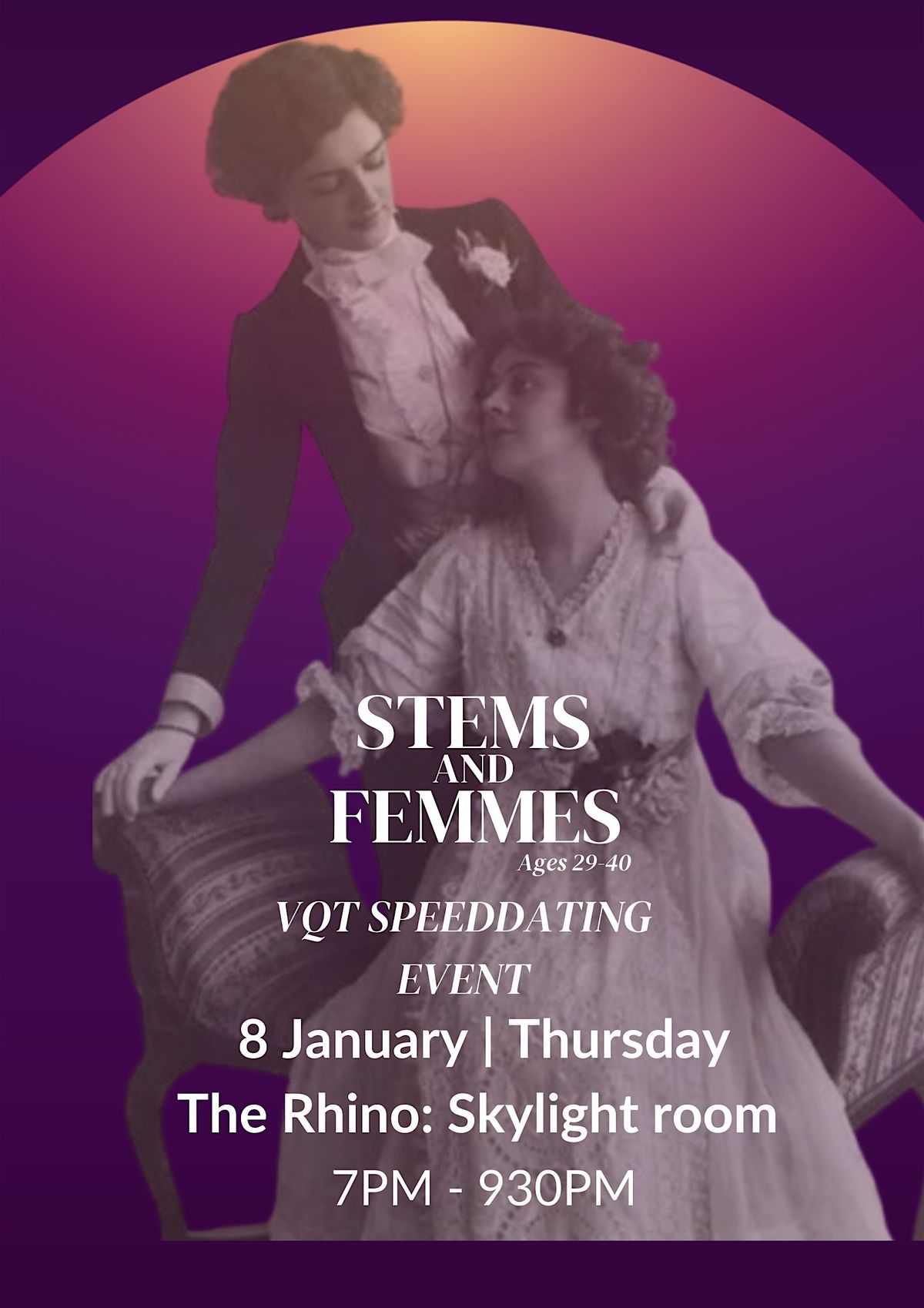Because some of the most wonderful, hilarious, kind, and magnetic queer singles are not on the apps ..... and even if they are, they might not swipe right on you (or you on them!) even though you could hit it off instantly in person. BOTH FEMMES AND STEMS WILL GET TO SPEEDDATE EVERYONE:)