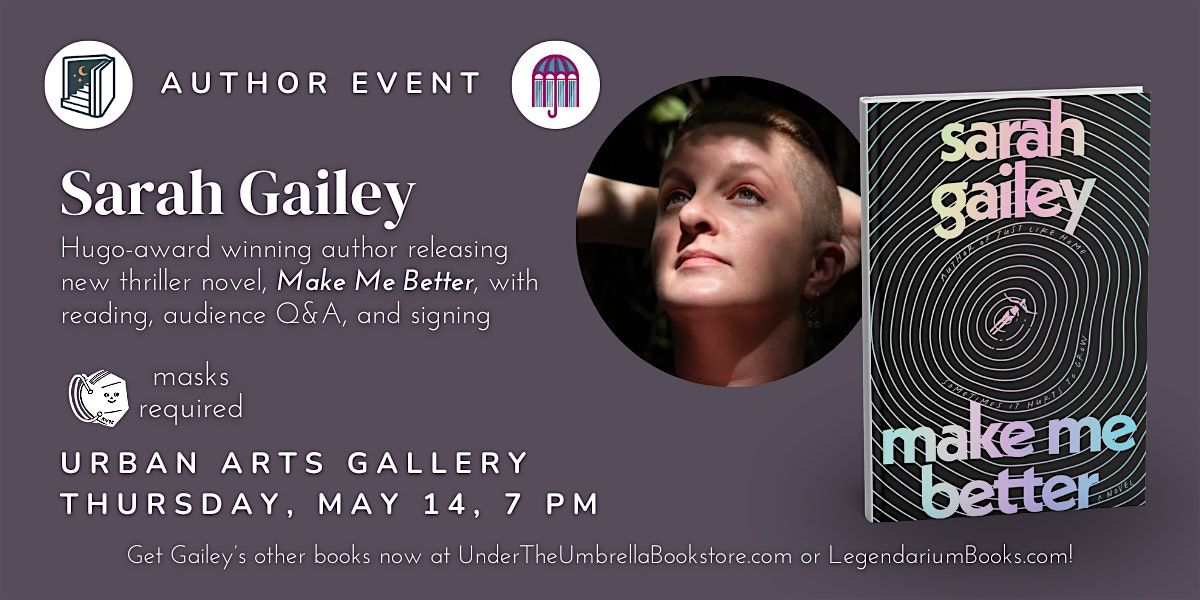 The Legendarium & Under the Umbrella are proud to host Sarah Gailey for the release of their new book, Make Me Better, at the Urban Arts Gallery!