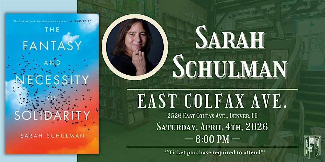 Join us as we learn from prolific and award-winning writer, Sarah Schulman-- a longtime social activist and outspoken critic of the Israeli war on Gaza--on a brilliant examination of the inherent psychological and social challenges to solidarity movements, and what that means for the future on Saturday, April 4th at 6:00 PM at our Colfax location.