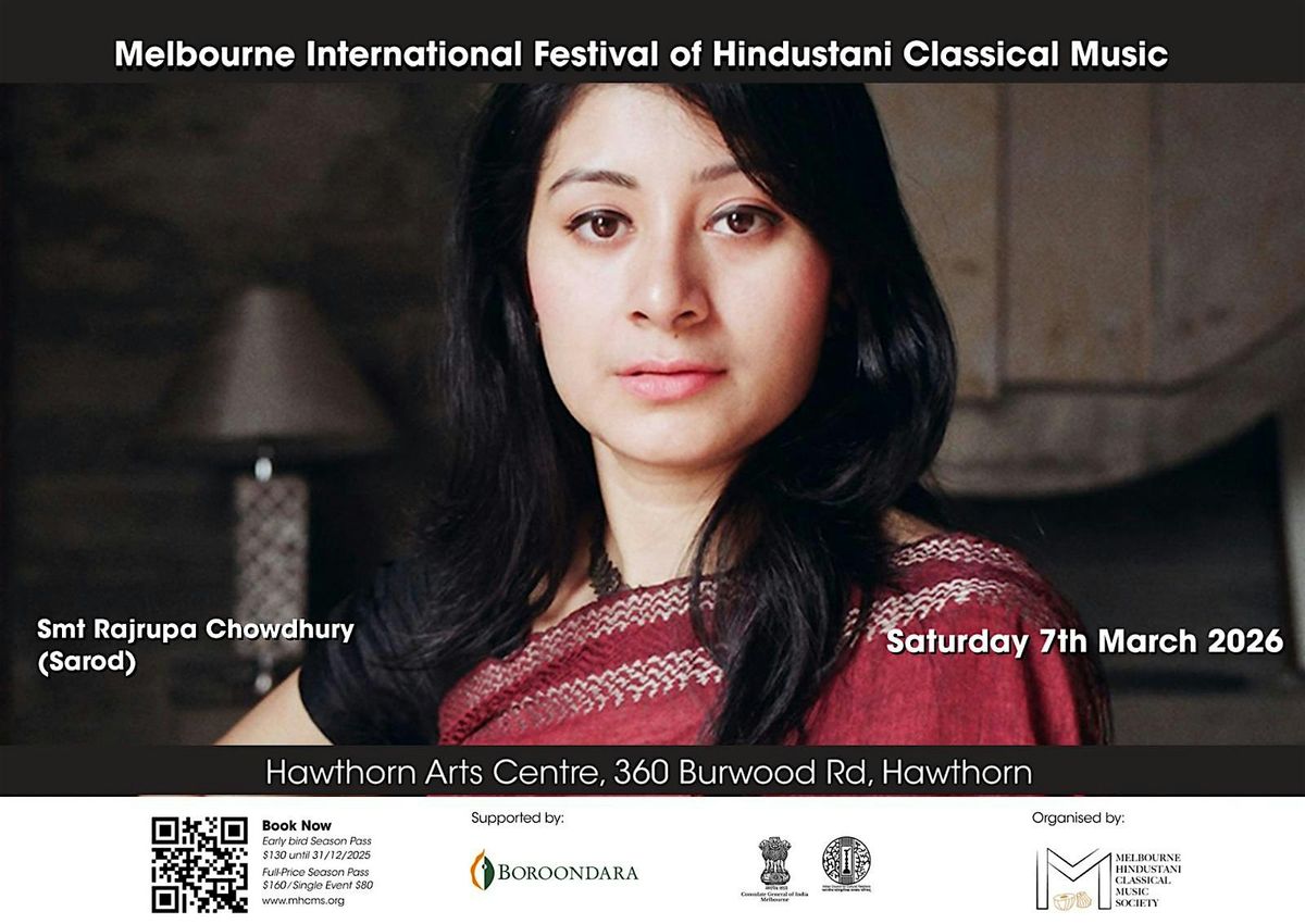 Join us for the 2026 festival opener, presented by Smt Rajrupa Chowdhury on Sarod.