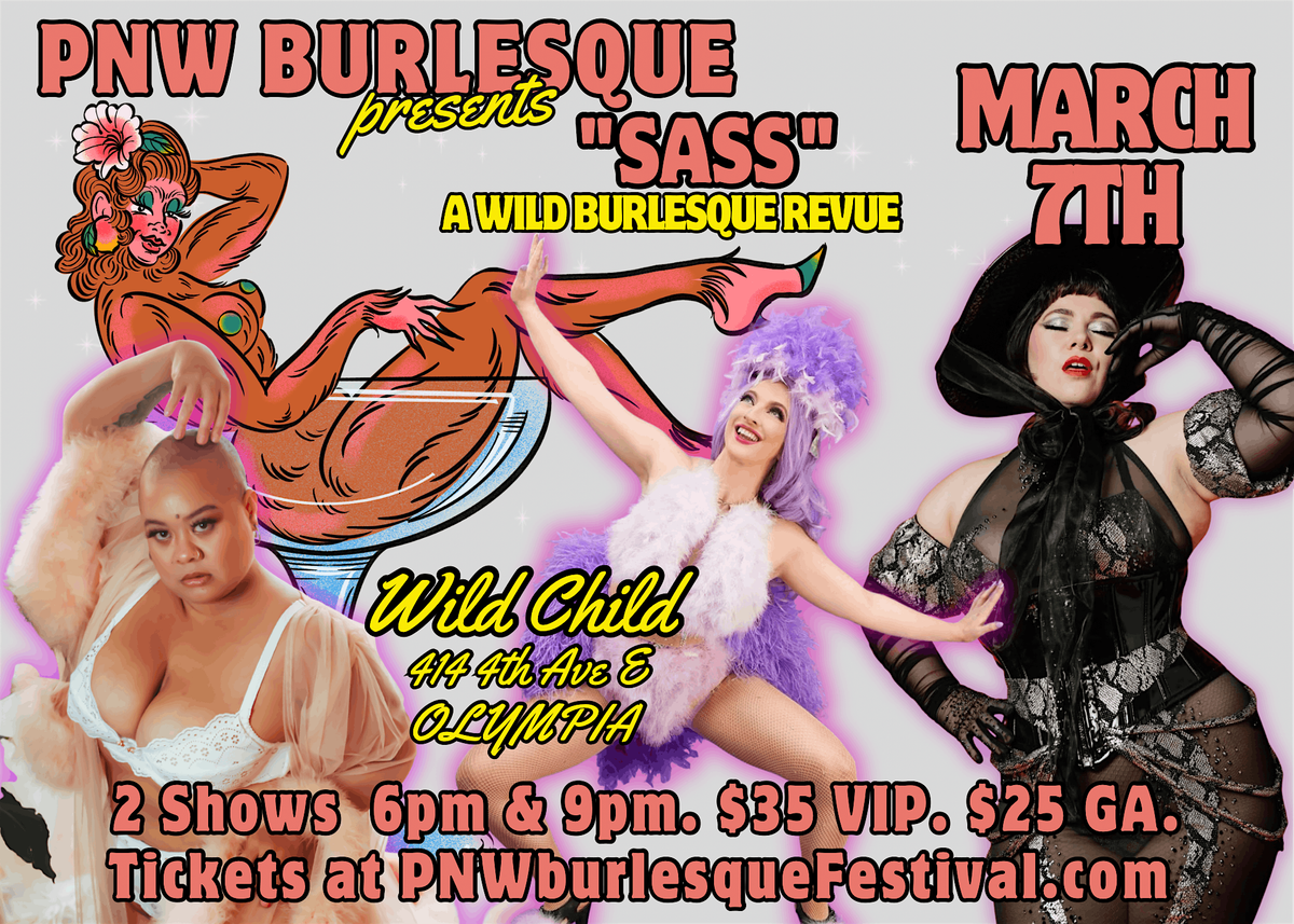 Join us for an unforgettable evening of glitz, glamour, sparkles, and SASS at The Wild Child in downtown Olympia. Prepare to be delighted by sizzling acts from some of the best performers in the Pacific Northwest.