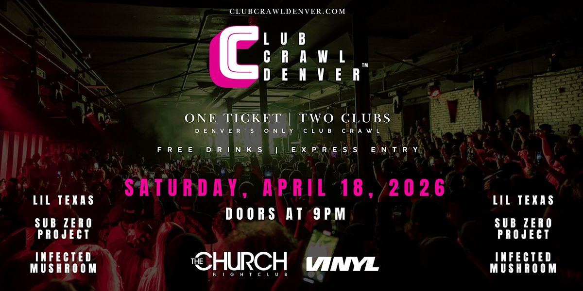 Club Crawl is Denver's #1 nightlife experience that brings you VIP express entry to both Church Nightclub and Club Vinyl and two complimentary drink tickets, all with one ticket.