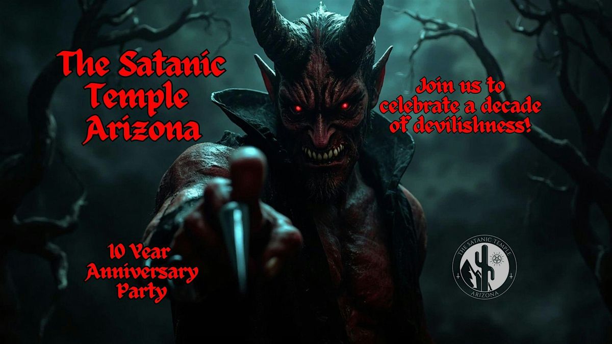 For ten years, The Satanic Temple of Arizona has been a black-clad beacon of rebellion in the desert. In 2026, we honor a decade of deliciously unholy history with a celebration worthy of The Adversary.